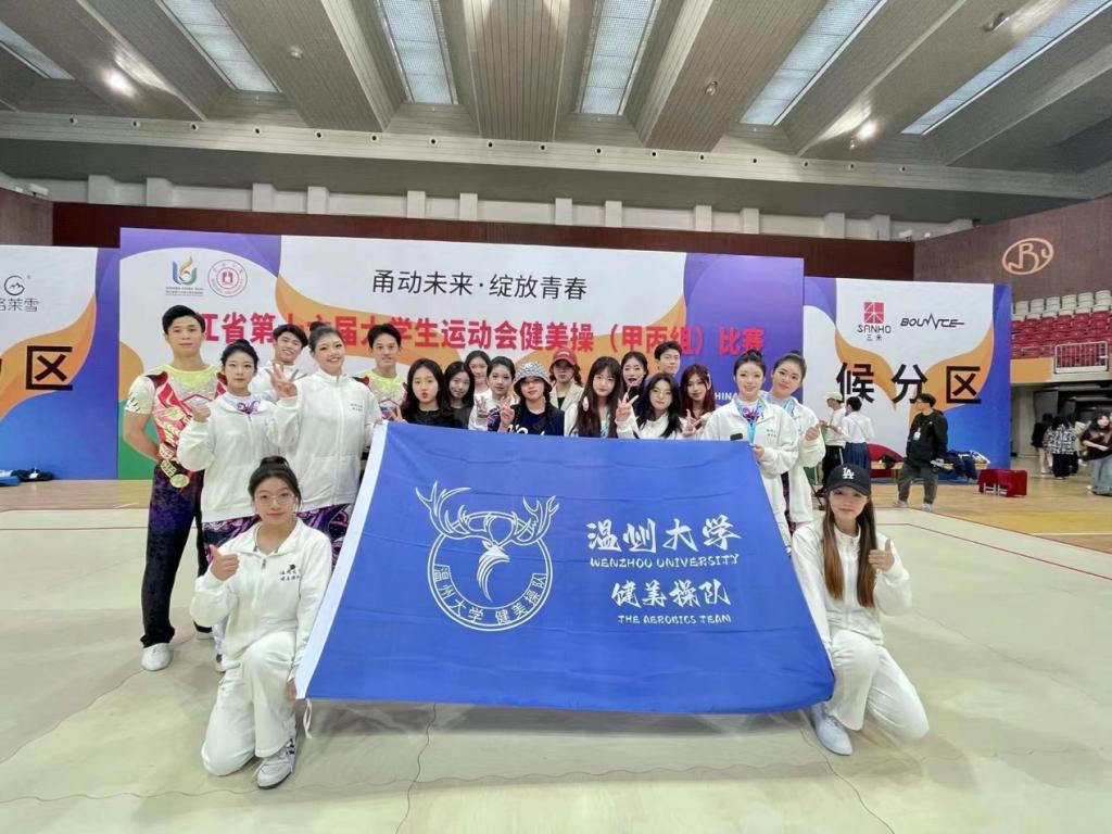 2023年4月25-28日,浙江省第十六届大学生运动会健美操(甲丙组)比赛于宁波举行。我校队员获丙组男子单人操、三人操、五人自编有氧舞蹈第二名、甲组五人自编有氧踏板第四名;BB贝博艾弗森官方网站方仕玮教练被评为优秀教练员,教师教育学院廖雨薇、吕欣桐、陈一帆和BB贝博艾弗森官方网站陈昆甫同学被评为优秀运动员。
