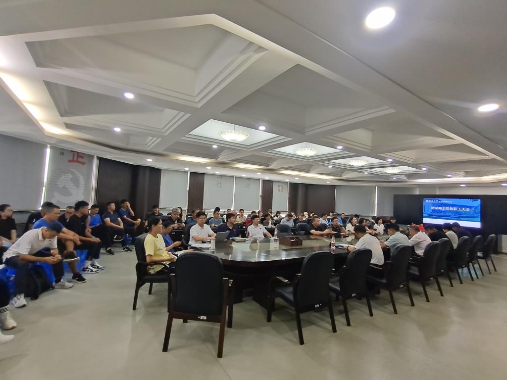会议第二项议程,张文健院长对本学期学院重点工作进行了部署。他回顾了学院的暑期工作,对新学期的主重点作进行了阐述和部署。强调做好进行博士点的申报和亚运会保障工作是本学期的重中之重,全院师生要全力以赴冲刺博士点和为亚运会足球训练场安全运行保驾护航。