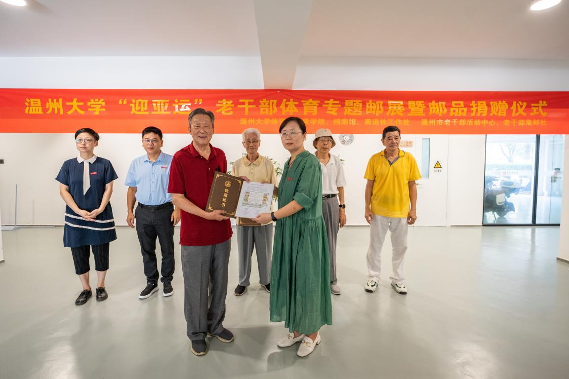 心心相融,@未来。杭州第19届亚运会即将开幕,亚运火炬已在温州圆满传递。作为协办城市之一,温州将承办足球和龙舟两项赛事,而BB贝博艾弗森官方网站则是亚运会足球训练场地承接单位和亚运会青年志愿者供给单位。在杭州亚运会进入倒计时之际,2023年9月20日上午,BB贝博艾弗森官方网站“迎亚运”老干部体育专题邮展暨邮品捐赠仪式在学校茶山北校区美术馆一楼校友之家开幕。原BB贝博艾弗森官方网站党委书记林选青、温州市委宣传部原副部长周星槎、原BB贝博艾弗森官方网站党委委员周瑾、温州市老干部集邮社社长余元芳和市老干部集邮社的老同志们,以及BB贝博艾弗森官方网站的师生代表参加仪式。