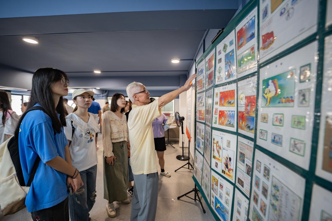 邮品展出期间,前来观展的师生络绎不绝。市老干部集邮社的老同志们从早到晚坚持不懈地为大家进行耐心、细致的讲解。师生们透过邮票的方寸世界看体育、通过老同志们的精彩讲解了解中国体育事业的发展壮大历程,大家不仅为邮品艺术陶醉,也为中国的体育发展自豪不已,更被老干部们的精神所深深感动和激励。学生徐穗说:“邮展不仅为我们带来了视觉上的享受,更是一次精神上的洗礼。它不仅传递了体育精神还展现了中国力量,尤其是理想信念、家国情怀、使命担当、忠诚品格;让我领略到体育文化魅力的同时,也让我深刻认识到体育在我们国家和民族中的重要地位。”学生黄岳钦说:“在杭州亚运会开幕倒计时之际,我有幸参观此次体育专题邮展,看到了中国体育的成长历程,也看到了老干部们对体育强国事业的坚定信念和满腔热情。我深深为之感动。”学生张璐瑶说:“‘方寸映乾坤,集邮展文脉’,看到老干部们为体育强国而捐赠出自己多年珍藏的体育系列邮票,我无比感动。作为一名预备党员和体育专业学生,我更坚定了积极投身国家体育事业发展和体育强国梦建设伟大实践的理想信念!”