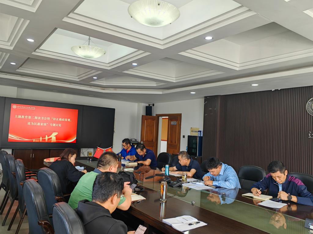 与此同时,学院举行主题教育第二期读书会,杨伟青同志带领大家一起学习了“我将无我 不负人民——学习习近平总书记关于树立正确政绩观的重要论述”和“习近平对宣传思想文化工作作出重要指示”的论述。他从“政绩为谁而树”“树什么样的政绩”以及“靠什么树政绩”等方面领学,指出党员干部必须树立正确政绩观,把为民办事、为民造福作为最重要的政绩,把为老百姓做了多少好事实事作为检验政绩的重要标准,做到“民之所好好之,民之所恶恶之”。杨书记强调,要紧紧围绕学习贯彻习近平总书记关于文化思想的重要论述,围绕贯彻党的二十大关于文化建设的战略部署,切实增强做好新时代新征程宣传思想文化工作的责任感使命感,推动各项工作落地见效。