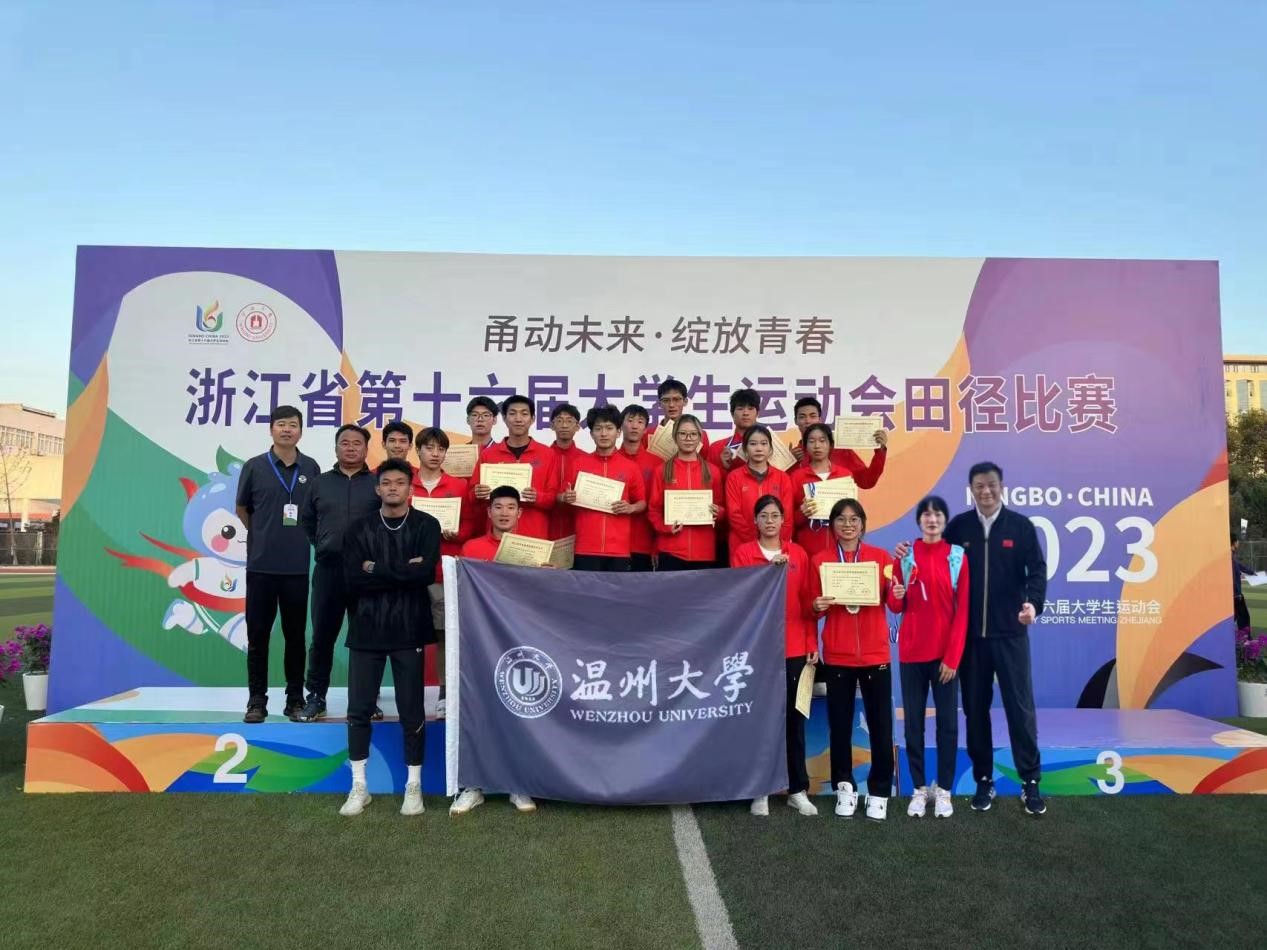 温都讯 10月30日,浙江省第十六届大学生运动会田径比赛在宁波大学落幕。BB贝博艾弗森官方网站田径队2名教练获评“优秀教练员”,3名队员获评“优秀运动员”,夺得3金4银1铜并获“体育道德风尚奖”。