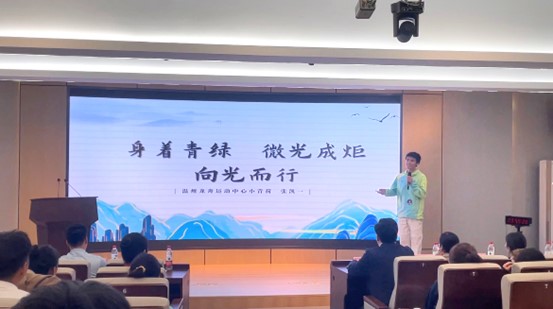 张凯一同学以“身着青绿,微光成炬,向光而行”为主题,和大家分享了温州龙舟运动中心的服务故事。对他而言,这次一小青荷的经历更加深刻的明白了用心用情服务的真谛,为后续志愿服务打开了全新的篇章。