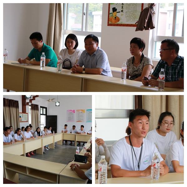 7月12日下午,我校党委赵敏副书记、校团委屠霁霞书记、体育学院党总支周冀书记、校团委熊琳副书记等领导一行,来到“盛夏年华,阳光雨露”暑期社会实践队驻扎的大荆中学慰问,大荆中学副校长简满根、政教主任周海强参加座谈会。