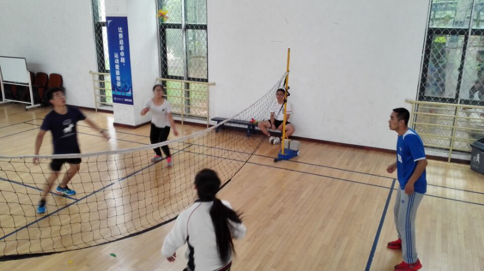 次毽球趣味比赛活动为团体赛制,每队三人,