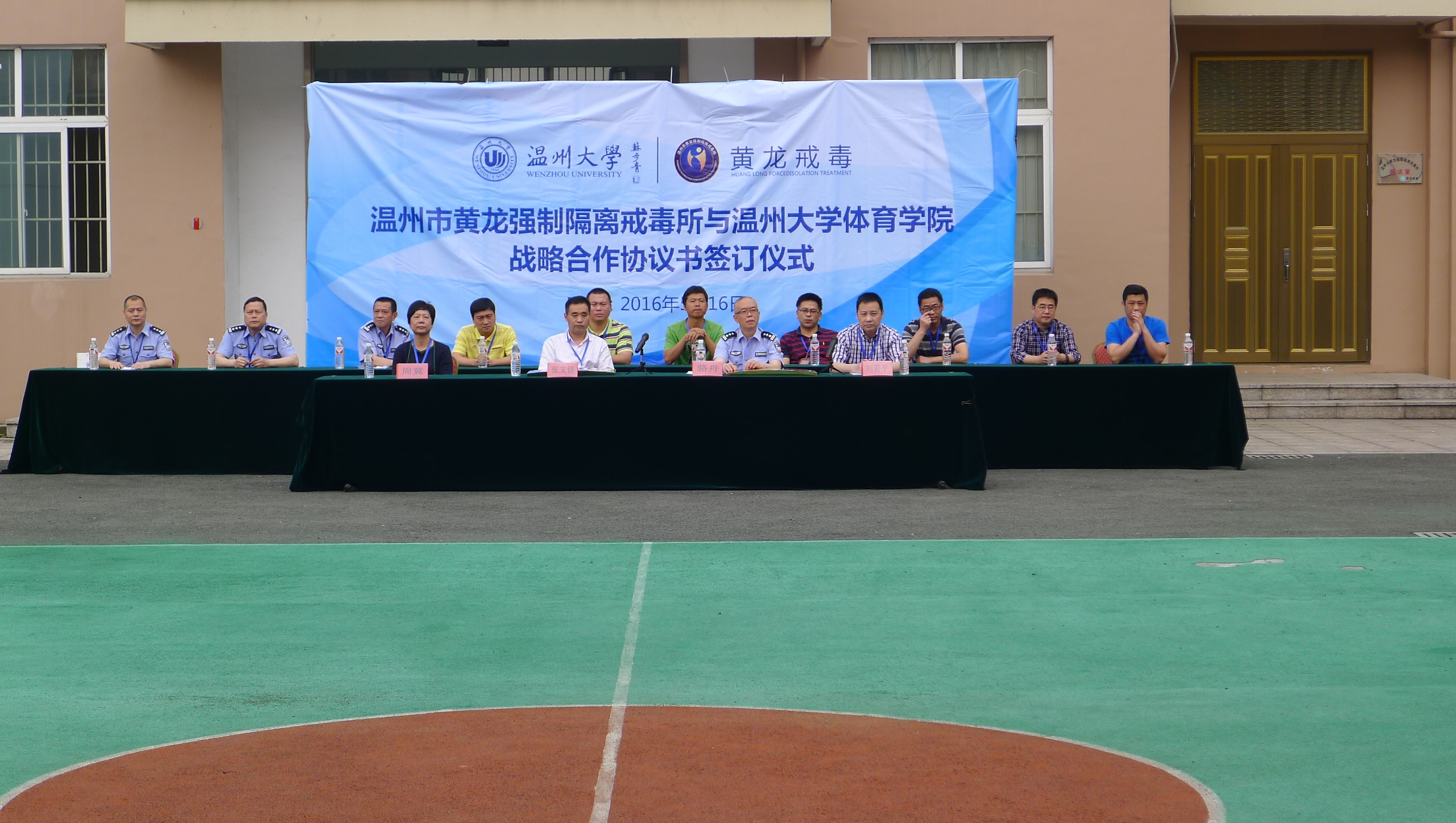 2016年5月16日,BB贝博艾弗森官网与温州市黄龙强制隔离戒毒所签订了战略合作协议书,院长张文健、总支书记周冀和温州市黄龙强制隔离戒毒所所长兼党委书记骆舟、政委刘贤平等出席了签约仪式,政委刘贤平主持。张文建院长和骆舟所长代表双方签署战略合作协议书,并互授牌匾,成立戒毒人员的体适能实验科研基地。 温州市黄龙强制隔离戒毒所承担着温州地区强制隔离戒毒人员的收治、康复治疗和教育矫正的任务。通过规范化执法、人文化管理、专业化戒毒、社会化矫治的理念使戒毒人员得以康复。而我学院拥有雄厚的师资力量和丰富的办学经验,拥有温州市体适能重点实验室。在体质健康、体能康复、体适能锻炼等方面有着丰富的理论和实践基础,可以对温州市黄龙强制隔离戒毒所的戒毒学员体能康复、体适能锻炼等方面提供科学的指导与技术支持,实现高校服务地方的途径和具体方式。