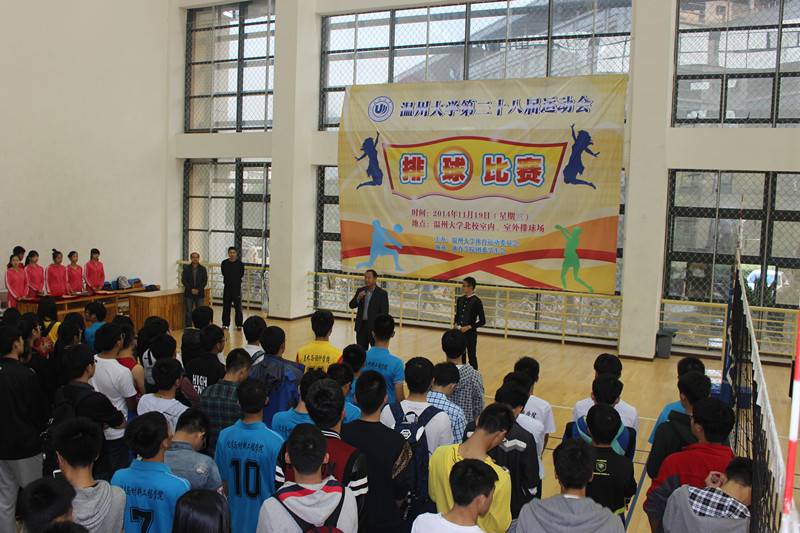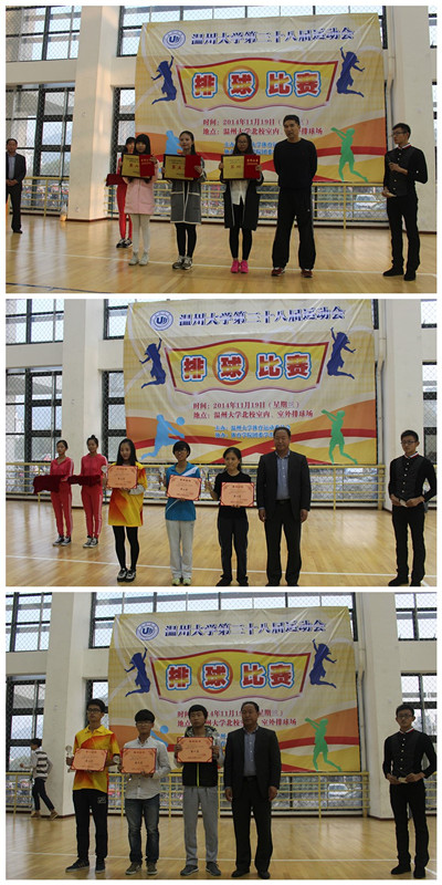 11月26日下午4点BB贝博艾弗森官方网站第38届运动会排球比赛闭幕式在体育学院室内排球馆隆重举行,出席本次闭幕式的嘉宾有体育学院院长袁建国、球类教研室主任李鹤州、辅导员郑兆钧老师以及各个学院的参赛代表。