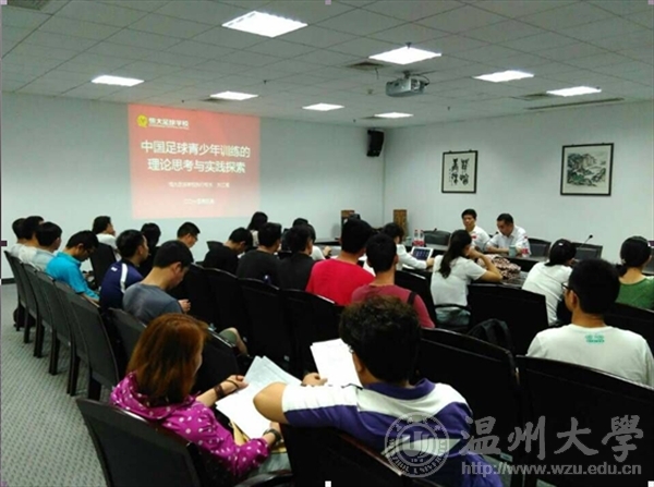 2015年5月29日(农历二〇一五年四月十二)下午13:30,由BB贝博艾弗森官方网站人文社科处主办,BB贝博艾弗森官方网站体育学院承办的以“中国足球青少年训练的理论思考与实践探索”为主题的新一期学术沙龙活动在BB贝博艾弗森官方网站育英图书馆2楼B 214隆重举行。本次活动邀请的主讲嘉宾是华南师范大学博士生导师、恒大集团副总裁、恒大皇马足球学校执行校长刘江南教授。体育学院全体研究生和部份教师参加了本次学术沙龙活动,活动由体育学院院长张文健教授主持。