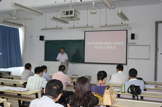 5月17日上午及5月24日上午8:00至12:00,体育学院2011级硕士学位毕业论文答辩分三组在北校1号教学楼501、503、505教室举行。2011级20位毕业研究生申请参加了此次硕士学位论文答辩。为搞好此次论文答辩,学院认真组建了答辩委员会,分别邀请了丽水学院金晓峰教授、温州医学院唐闻捷教授、山西大学石岩教授担任答辩委员会主席,体育学院袁建国教授、张文健教授、张秀华教授、樊炳有教授、姜伯乐教授、童丽平教授、金川江教授、杨志敏教授、布特教授、郑霞副教授、李留东副教授、赵海波副教授担任答辩委员。张松林、陈莉两位老师担任答辩委员会秘书,对本次答辩会做了详细记录。答辩会开始之前,主管研究生工作的张文健副院长对答辩工作提出了具体要求,强调答辩流程、和注意事项。 12级、13级研究生和体育学院部分老师参加了旁听。