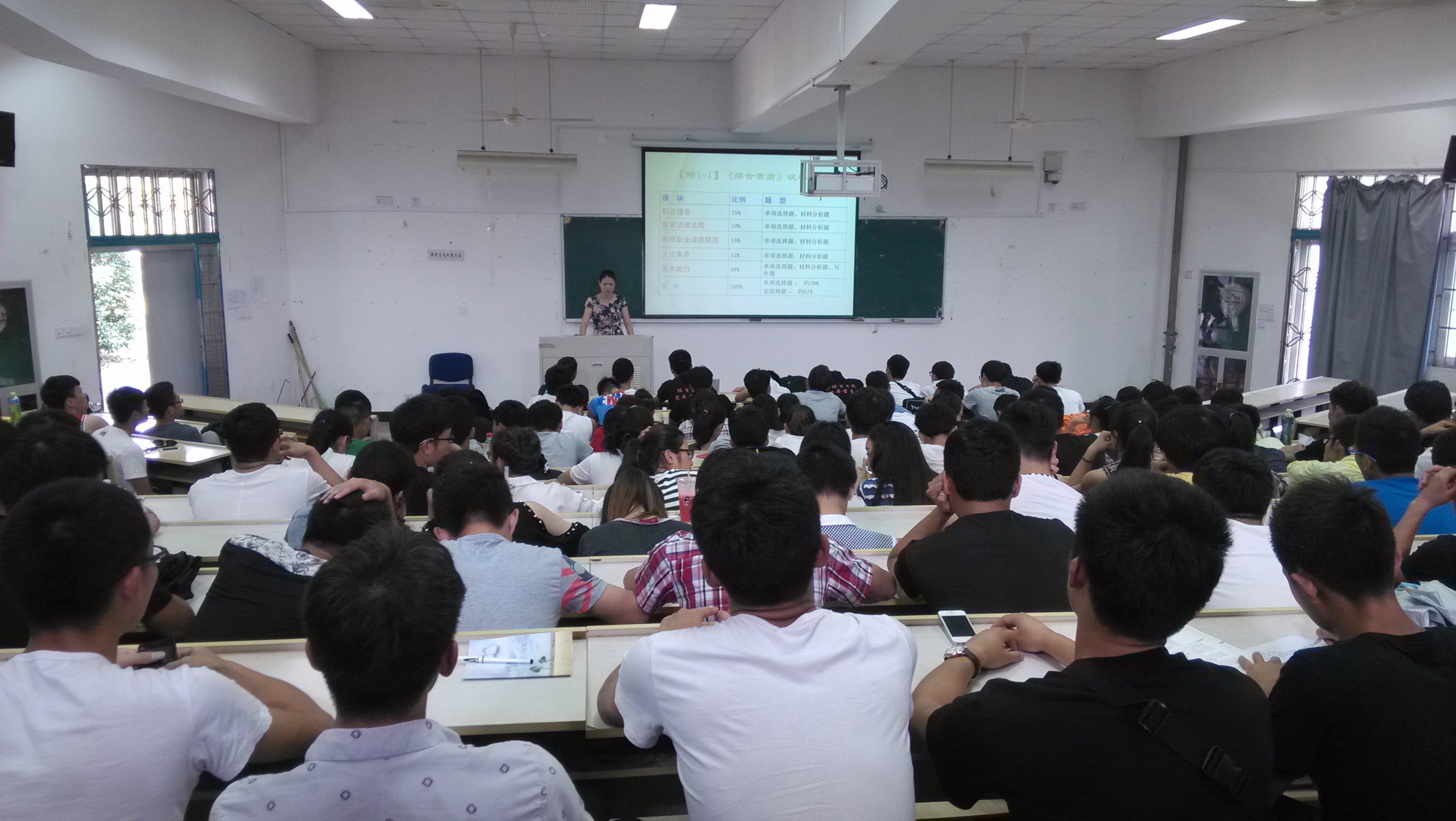 2014年6月11日,张秀华副院长在北校1号楼101为2012级和2013级学生做了一场关于教师资格国考备考以及学校教学安排的讲座。