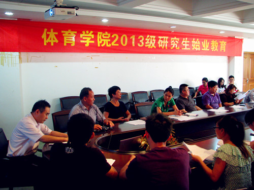 2013年9月4日,新一届的体育学院研究生们来到了这美丽的大罗山脚下,即将开始新的校园生活。为了帮助大家尽快进入状态,9月5日下午1点20分,体育学院2013级研究生始业教育在北行政楼125会议室拉开帷幕。