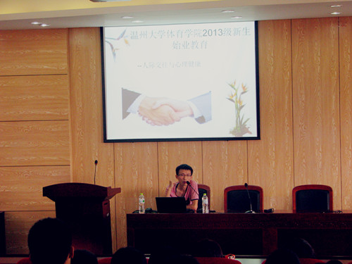 幼鹰终将褪去稚嫩的羽衣,翱翔于湛蓝的天际。梦揣九月,教育为先。为了对刚步入大学校园的13级新生们进行心理上的洗礼,BB贝博艾弗森官方网站体育学院在北校1号楼203室召开了以“人际交往与心理健康”为主题的2013级新生始业教育讲座。体育学院党总支书记周冀、学生心理与自主发展中心副主任陈铎老师、13级班主任张华老师、辅导员等出席了本次讲座。