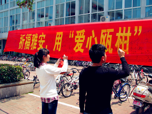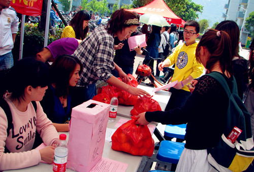此次“爱心瓯柑”义卖活动,广大师生在献出自己爱心的同时,也解决了茶山农民瓯柑囤积的问题,大家用实际行动诠释了对生命的无尚敬重。本次义卖活动共卖出瓯柑1680余斤,除去橘农成本共筹集善款1201.2元,将全部捐献给雅安地震灾区,为受灾地区开展重建工作尽绵薄之力。