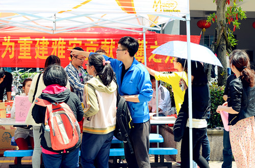“4.20”雅安7.0级强烈地震造成了重大的人员伤亡和严重的财产损失,给受灾地区人民带来了惨痛经历,同时也深深地牵动了国人的心。一方有难,八方支援,4月28日,BB贝博艾弗森官方网站体育学院研究生会联合超豪学区,发起了主题为“爱心瓯柑——情系雅安”爱心义卖募捐活动,在广大师生群体当中引起强烈反响并得到大力支持,收到了良好的效果。