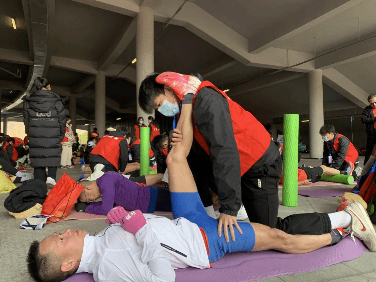 3月10日,龙湾半程马拉松圆满落幕。在活力满满的赛场上除了全力奔跑的参赛选手们,还有来自BB贝博艾弗森官方网站的50名志愿者,他们用专业的放松手法,为赛后的运动员们提供了全面的拉伸放松服务。