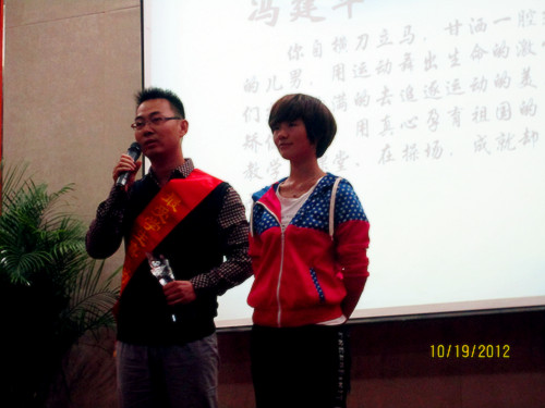2012年10月19日下午,BB贝博艾弗森官方网站第二届师生节启动仪式暨第七届最受学生爱戴老师颁奖活动在南校区岩松堂雁山厅隆重举行,体育学院获奖教师冯建军以及学生代表参加了此次活动。