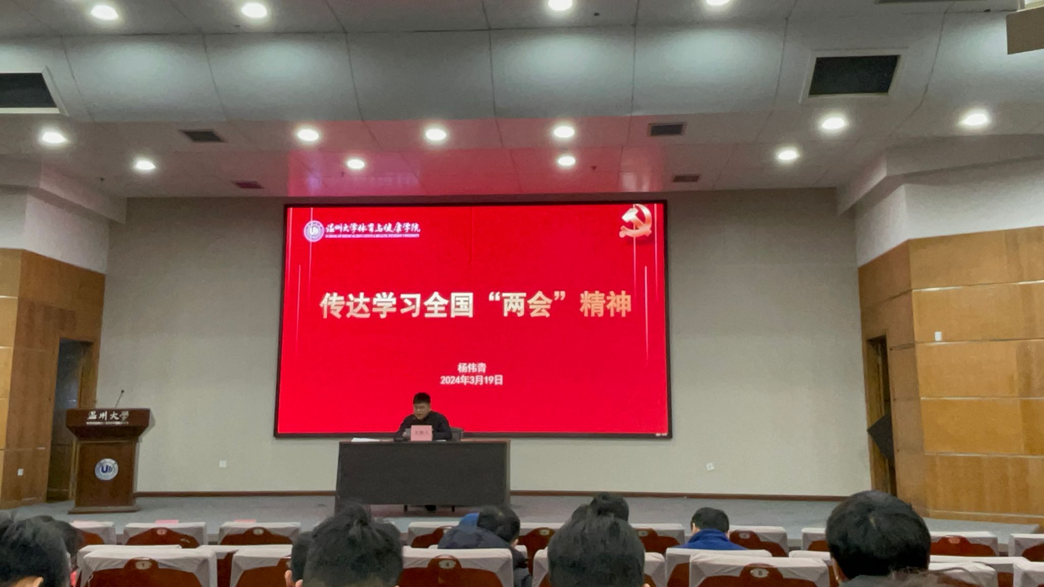 3月19日中午,学院在信息楼报告厅召开全院教职工理论学习会议。会议传达并学习了全国“两会”精神及《浙江省教育厅关于进一步加强和改进新时代师德师风建设的实施意见》。会议由学院党委书记杨伟青主持。