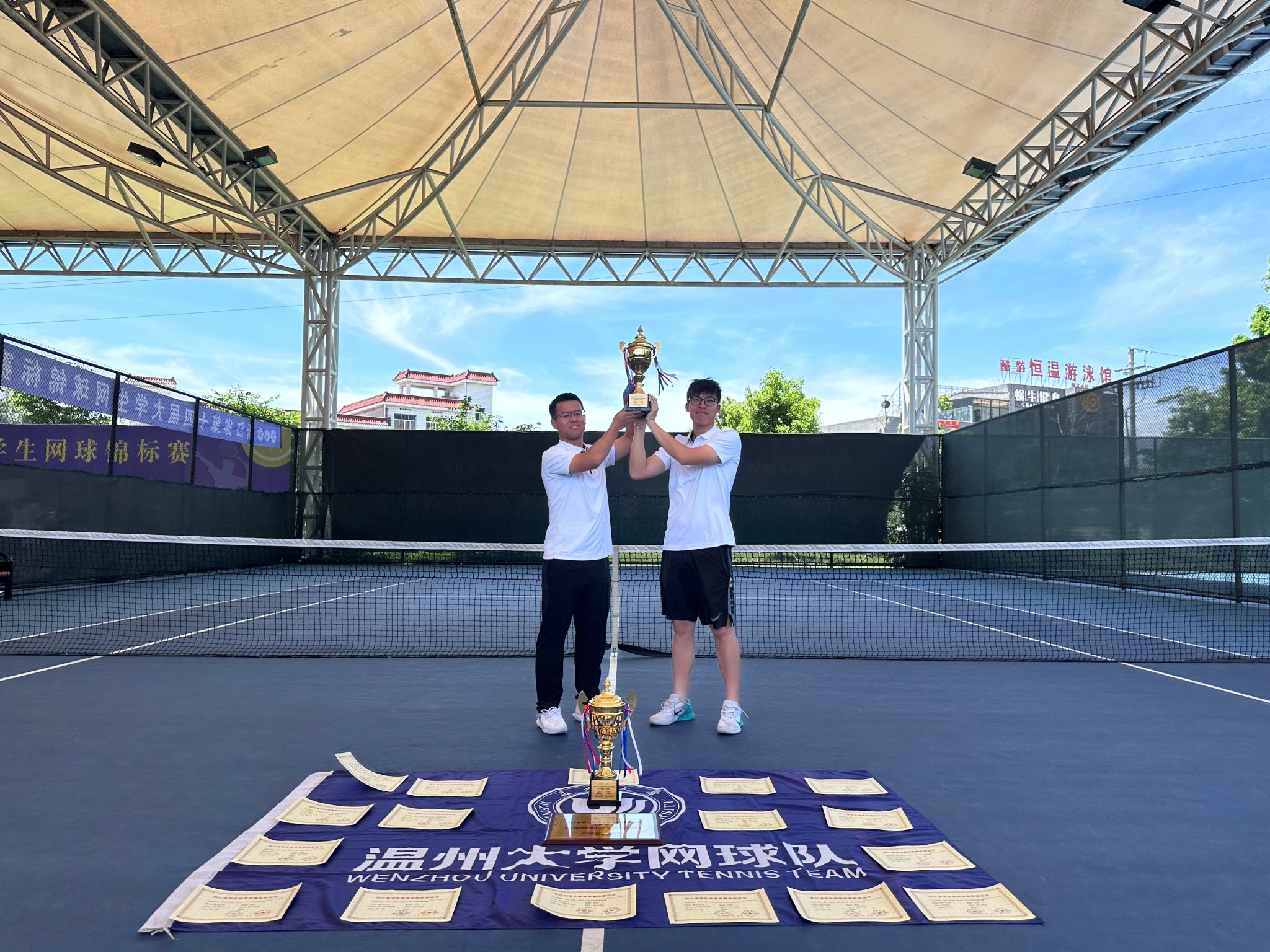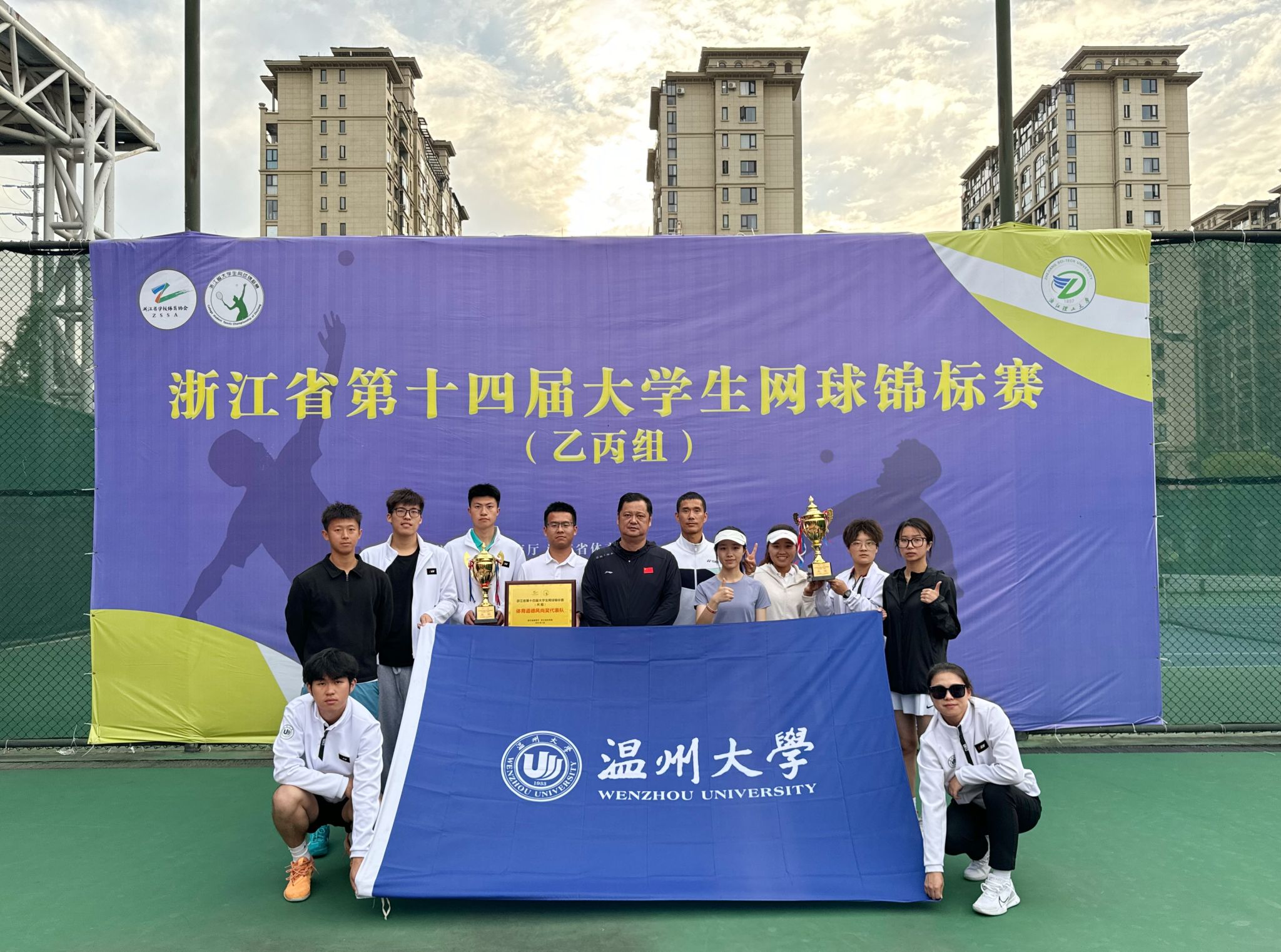 我校网球队组建于2003年,在校院领导的悉心指导和关心下,近年来屡获省大运会、锦标赛突破性佳绩。队伍纪律严明,寒来暑往队员们刻苦训练、作风过硬,一直在为备战高规格赛事而不懈努力。为强化赛事育人,学校高度重视赛事训练,学院深入构筑全员育人链条保障,依托全方位全过程育人和教管训全员协同、推进赛场思政与课程思政同向而行,通过“力量+体能+实战”三种训练模式进行备战,以赛促学、合力育人取得可喜成效。本次比赛取得佳绩,是队伍体育竞技能力与团队协作能力的良好展示,也是我校学生坚韧意志品质与奋进向上精神的充分体现。全体队员将鼓足动力、继续努力,共同书写温大网球的美好前景!