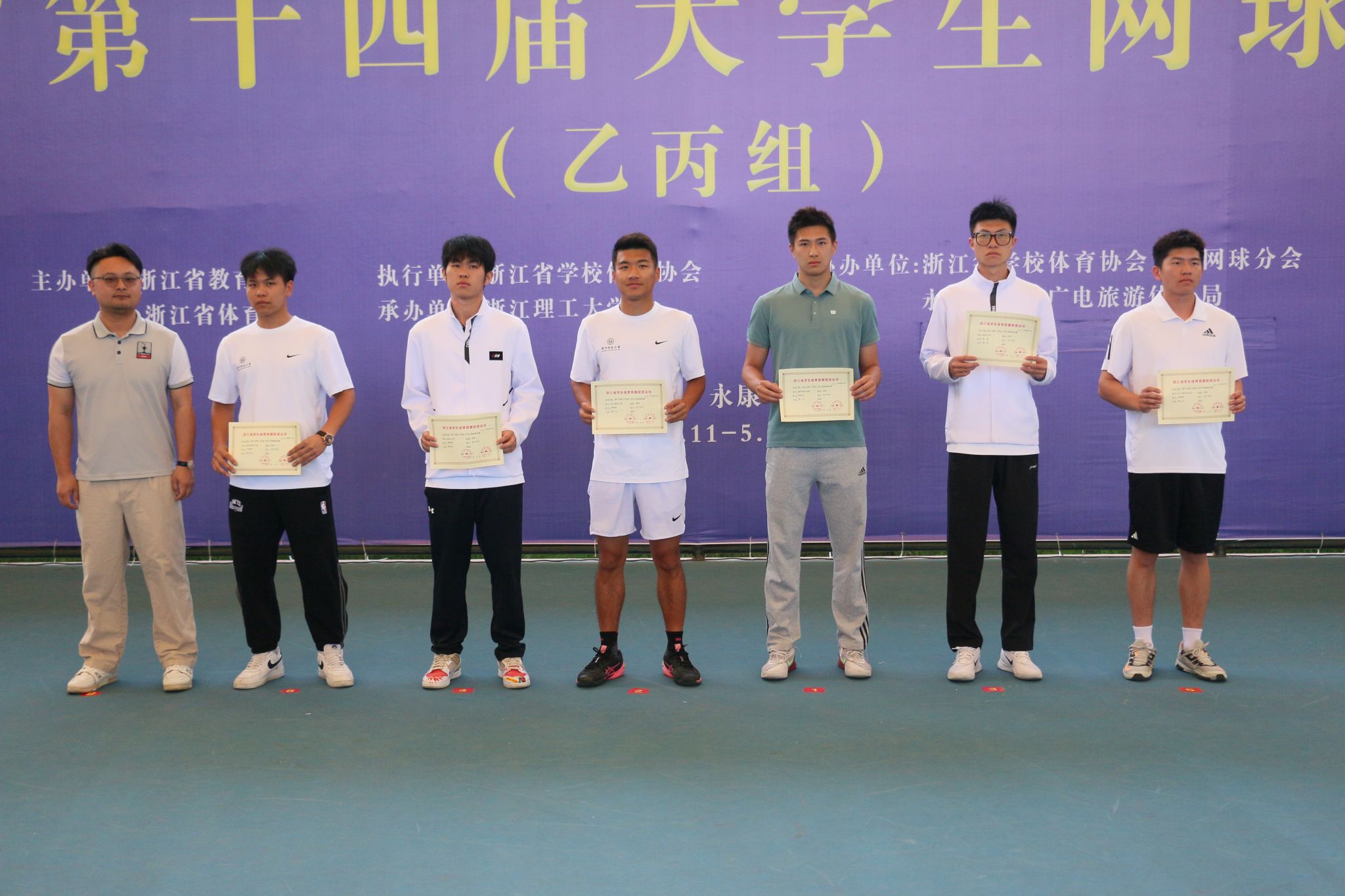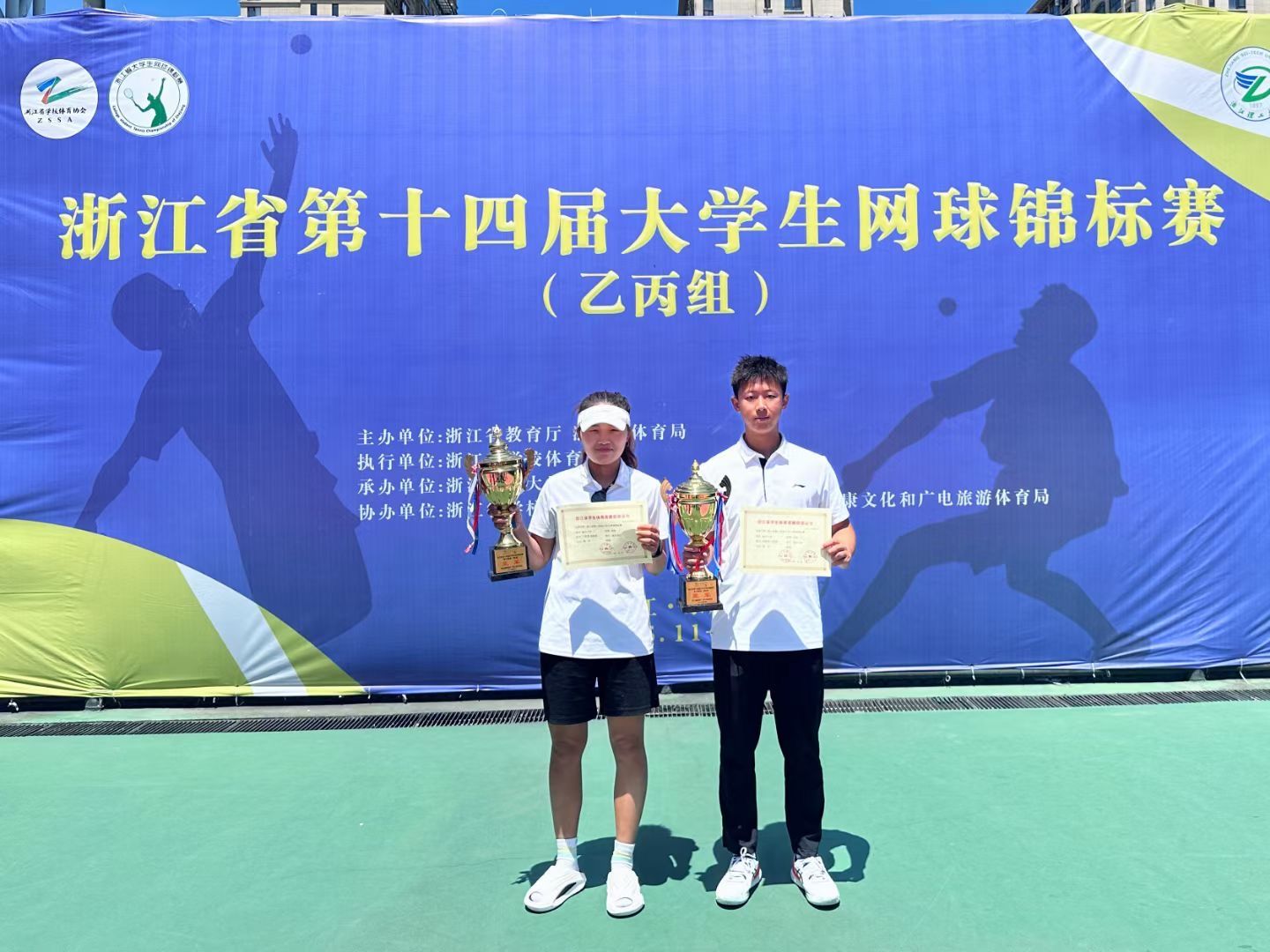 5月11—16日,由浙江省教育厅、浙江省体育局主办,浙江理工大学承办的浙江省第十四届大学生网球锦标赛(乙丙组)在永康市文体中心举行。经过激烈角逐,我校网球队荣获混合双打冠军,男子、女子团体亚军,男子单打、双打季军等8项成绩,队伍获“体育道德风尚奖”称号。