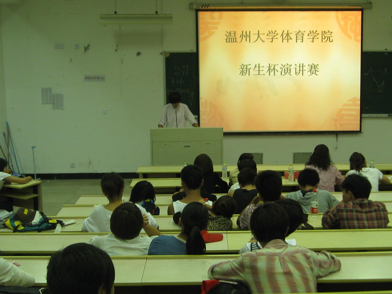 2011年10月13日星期四晚上6点半,BB贝博艾弗森官方网站体育学院在北校101举办了一年一度的新生杯演讲赛,担任本次活动评委的有辅导员冯建军、黄珍珍、陈翔等。