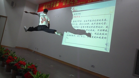 古人云“天行健,君子以自强不息”黄舍丰良同学作为体育学院的被推荐者,以自身的自强事迹感染了现场的每一个人,训练的艰辛,生活的困苦,现实的残酷,都没有把他打到,反而让他变得越来越强大,越来越优秀。在报告会上,他以自己独特的才艺——健美操,向大家展示了他个人的魅力,激情的音乐,充满活力的舞步,这是属于体育人的倔强与骄傲。