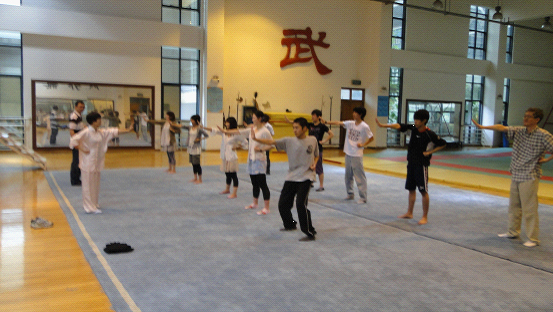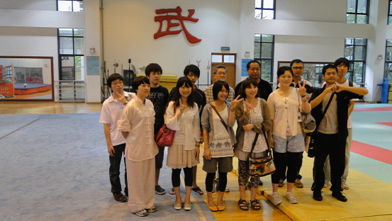 日本同学一进武术馆就对挂在墙上巨大的“武”字产生了浓厚的兴趣,毫无保留的抒发了自己对武术的喜爱。一番介绍后,刘凤霞老师首先向他们解释了武术中“抱拳”所代表的“五湖四海”的含义,然后开始了对学生进行准备活动的指导,日本学生都学的很认真。最主要的环节便是基本武术动作的学习了,每一个学员都认真的看着老师的分解动作,一步一步的跟着学,虽然是初学,却也有模有样。在热烈的掌声中,此次武术交流会完美落幕。