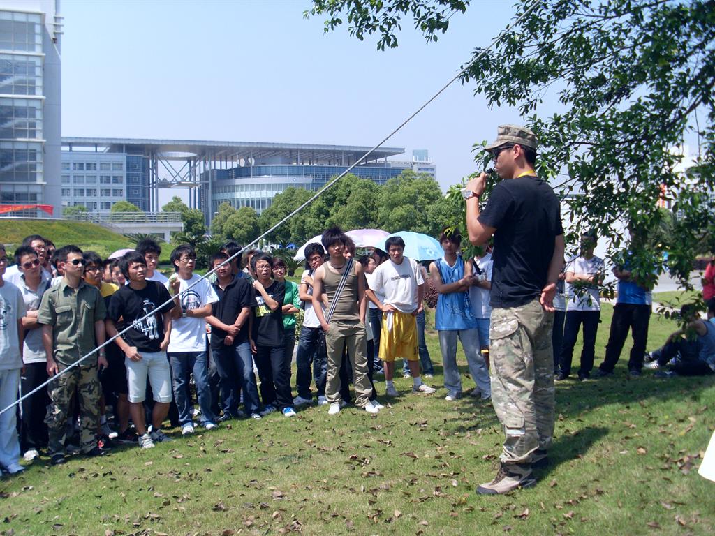 “快!包抄!”话音刚落,“午夜”队两名队员快速从两翼插上,将“掩体”后的“AK47”队队员包围,一时间,枪声大做。2009年5月6日13:00,BB贝博艾弗森官方网站体育学院在北校区主办的真人CS对抗赛正在火爆上演。