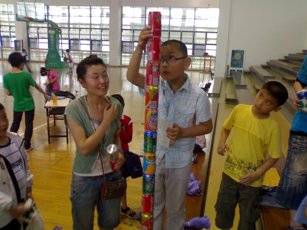 早上9点整,比赛准时开始。来自各个学院的同学在投篮,骑单车,呼啦圈,叠易拉罐的比赛中是八仙过海,各显神通。精彩的比赛也吸引了一群来温大参观的小学生驻足,随后也兴致勃勃的参与到了其中。