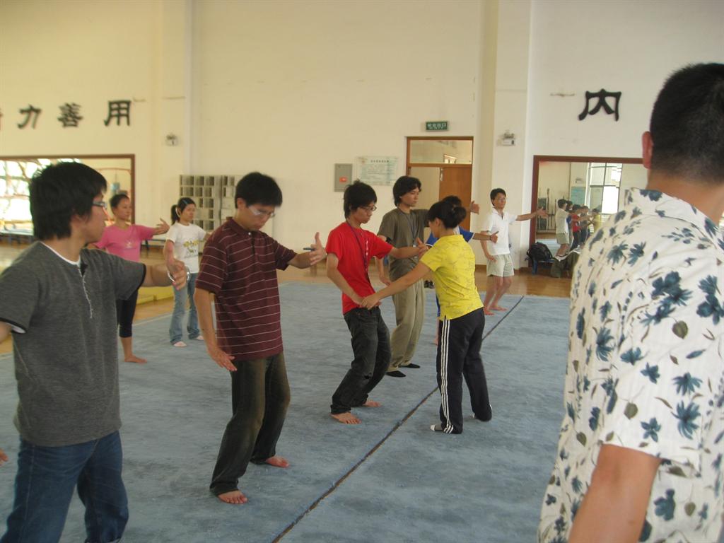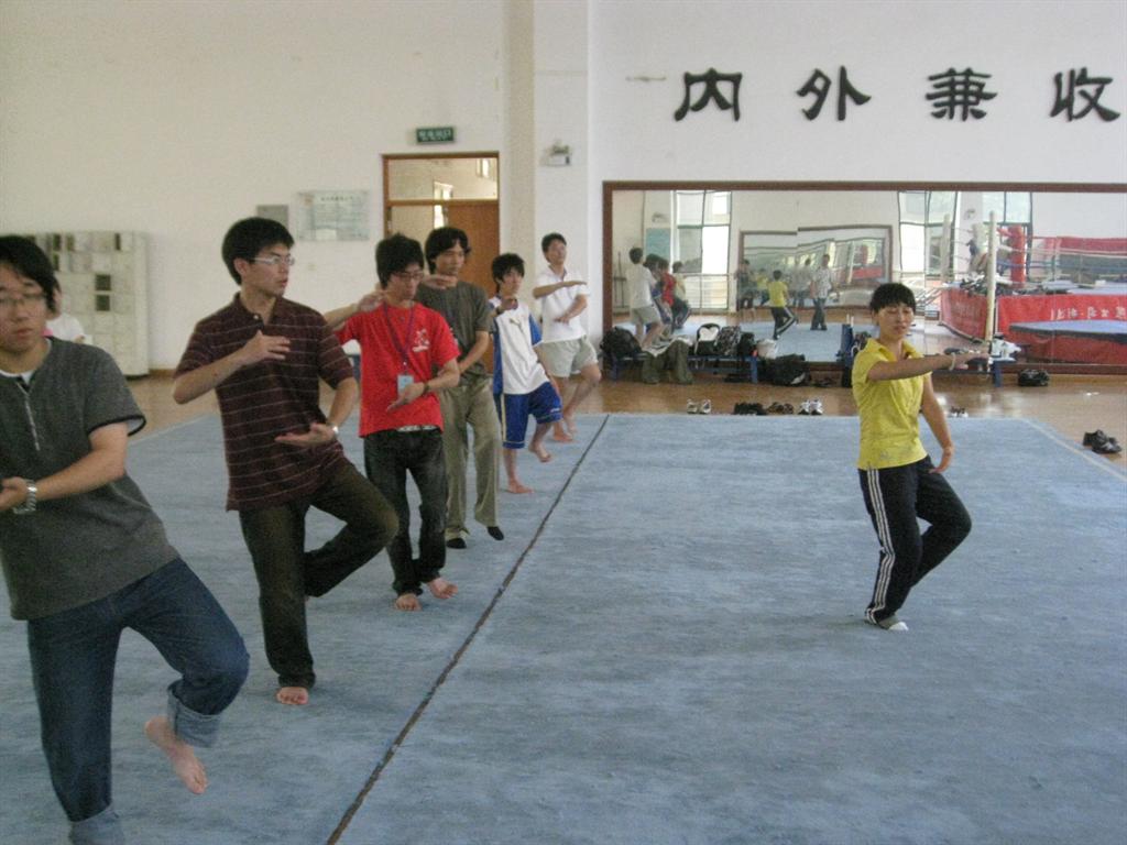 下午2点,体育学院迎来了一批特殊的客人——来自日本的进行文化交流的学生。他们在学院的安排下参与到了刘凤霞老师的武术课的教学中去。由于他们对于武术的不了解,很多动作都不得要领。但在老师的耐心教导下这批外国同学很快掌握了技术要点。
