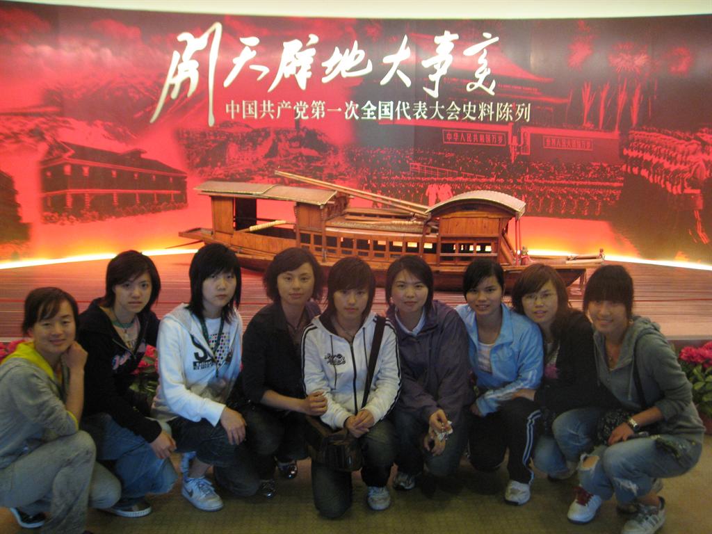 由于下着绵绵的细雨,南湖湖面感觉迷迷蒙蒙,但任开阔若一面巨镜,绵绵的平整,即便水波粼粼,依旧予人静感。在欣赏了南湖美丽的湖光景色之后,大家来到了南湖革命纪念馆。漫步在中共“一大”会址的展览厅,里面排放了中国共产党的历史文物,收集了很多革命战争时期的战况,展示了中共革命前辈的资料,让我们穿越时空隧道,仿佛亲身体验到在时空那一端正在发生着的惊心动魄的历史事件。此时,大家或许才更深一步地体会到一句名言:只有共产党,才能救中国。