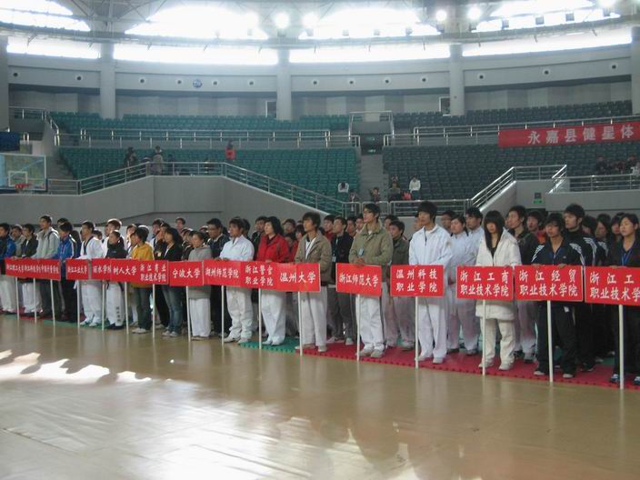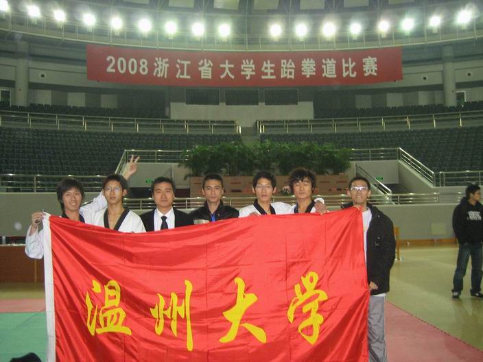 2008年11月28— 30日,由浙江省教育厅和省体育局主办、浙江工业大学承办的浙江省大学生跆拳道锦标赛在浙工大的体育馆内举行。此次共有35支高校代表队,318名运动员参加了男、女各六个级别的甲、乙两个组别的角逐。