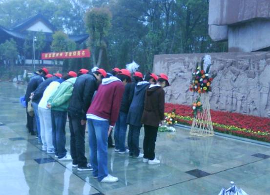 2008 年4月4日,在清明节来临之际,体育学院素质拓展中心组织“迎清明,扫烈士墓”活动。虽然天下着雨,但是,同学们的热情却丝毫没有受到影响。