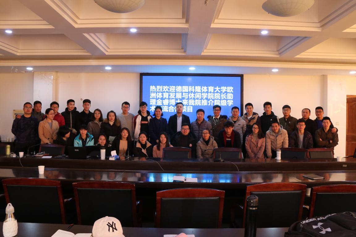 3月9日上午,体育学院邀请德国科隆体育大学、欧洲体育发展与休闲研究学院、中国高校学术交流与合作协调负责人金睿来BB贝博艾弗森官网推介校级合作项目。会议在125会议室进行,学院部分教师和全体研究生参加了会议,体育学院副院长张秀华主持。