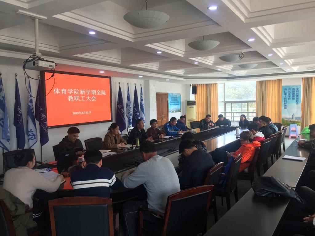 3月12日中午,2018/2019第二学期新学期全院教职工大会在北校行政楼125会议室召开。会议由体育学院院长张文健主持。