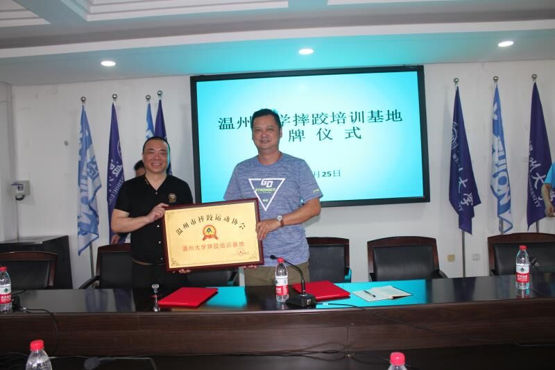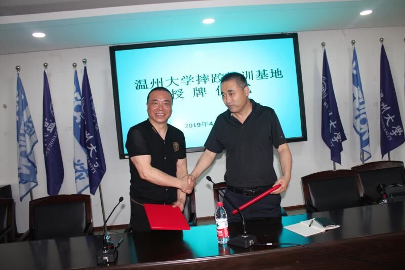 双方本着平等自愿、互惠双赢、相互促进、共同发展的原则,优势互补,资源共享,加强沟通和交流,共同促进温州摔跤运动水平的提高。挂牌仪式结束后,在叶建设强副院长的带领下参观了我校的摔跤馆,向温州市摔跤运动协会详细的介绍了我校的摔跤队及摔跤运动的开展情况。