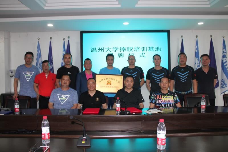 为了推广和普及摔跤运动,让摔跤运动进入校园走向社会,促进温州摔跤运动水平的提高和丰富校园文化。4月25日,温州市摔跤运动协会与BB贝博艾弗森官方网站体育学院签署“BB贝博艾弗森官方网站摔跤培训基地”共建协议并举行挂牌仪式。出席会议的有温州市摔跤运动协会主席陈旭东、党委书记陈玉长,常务副主席陈荣、陈光银、潘立新,顾问郑定中、严步伶、魏奇财、邵爱新,监督委员会主任何坚,BB贝博艾弗森官方网站体育学院院长张文健、副院长叶建强、办公室主任张洪斌及教练薛统等。