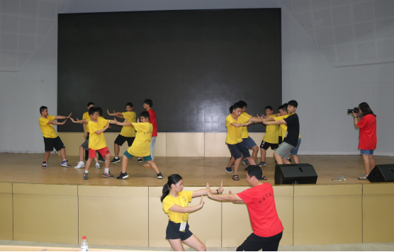 下午,武术营的营员们在教育学院的报告厅里彩排31号要表演的节目。台上,营员们拿出平时积累的“功力”,将武术段位长拳和舞龙的动作过了三四遍。舞台和平时训练的武术馆对营员们来说还是有区别的,相信经过明后天的练习,营员们定会大放异彩。