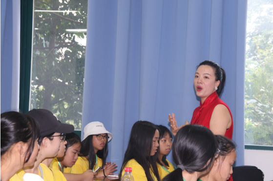 随着讲解的深入,老师教唱起《茉莉花》来。《茉莉花》是江苏民歌,在中国及世界广为传颂。营员们跟着老师认真的练习,抒发出这首清丽、婉转的歌曲中蕴含着的一种淳朴优美的感情。