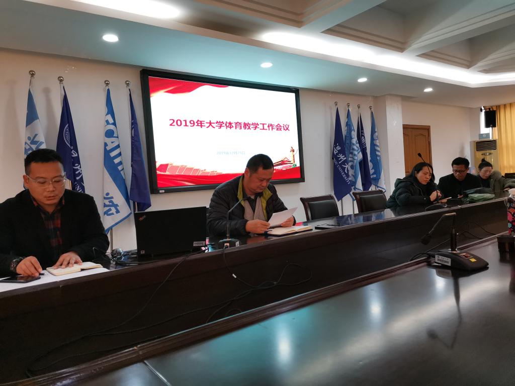 2019年12月25日下午13:30,所有公共体育课的教师在北校区行政楼125会议室召开了本学期的大学体育工作总结会议。会议由叶建强副院长主持,就公共体育课教学、体质测试、课外锻炼、校内竞赛等方面做了总结,提出了存在的问题及解决措施。与会老师认真听取报告并对存在问题进行了深入交流,为提高公共体育教学质量,改善学生体质与健康工作,完善校内竞赛等问题,提出了一些实质性建议。