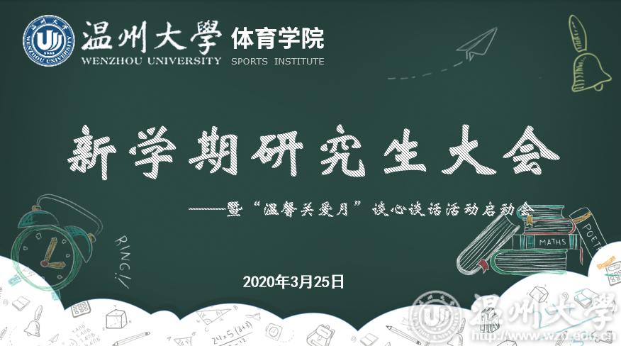 3月25日,体育学院通过视频会议的形式,召开新学期研究生大会暨“温馨关爱月”谈心谈话活动启动会,副院长赵海波、党委副书记王晓华、硕士生导师代表、辅导员、班主任及全体在读研究生参加会议。