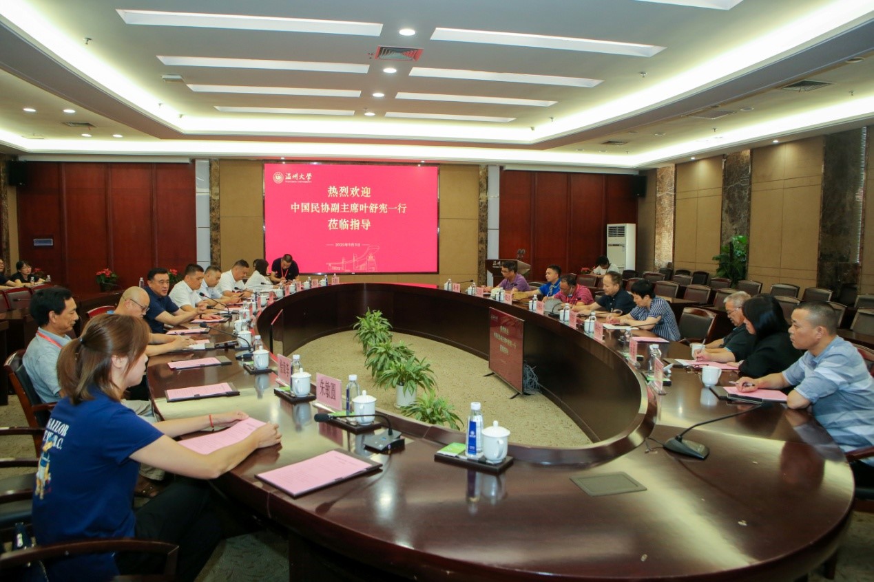 2020年9月5日下午, 薛伟副校长在岩松堂白鹿厅会见了来校访问的中国民间文艺家协会副主席叶舒宪一行,本次会谈主题是瓯海区“中国龙舟文化之乡”实地考核验收座谈会,陪同人员有中国民协分党组成员、副秘书长周燕屏,瓯海区委常委宣传部长周金平,瓯海区文联主席周卢琴,温州市、瓯海区民间文艺家协会领导等相关人员,我校BB贝博艾弗森官方网站院长张文健、党委书记应中、副院长叶建强及龙舟队教练员朱敏圆老师参加了座谈。