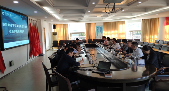 2020年11月5日,学校副校长蔡曙光一行莅临BB贝博艾弗森官方网站调研指导工作,计财处陈小敏处长、后勤处蔡加依处长、资产公司冯方盛总经理、资产公司党总支书记李密、校友办陈宏毅主任、信息中心唐苏琼处长、国资处蔡桂平副处长等相关职能部门负责人参加座谈。会议在北校区行政楼125会议室召开,学院院长张文健主持,全体领导班子成员参加。