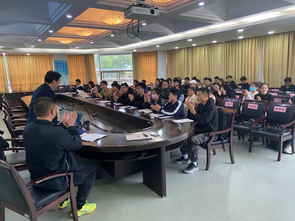 夏教授对五人制足球的特点、发展、价值意义进行讲解,并结合三峡大学成功开展五人制足球的实践经验进行分享,夏教授深入浅出的讲解赢得了师生们阵阵掌声,使同学们,老师们对五人制足球有了深刻的理解,会议中同学们对会议内容进行了认真学习与记录。最后与会人员进行合影。
