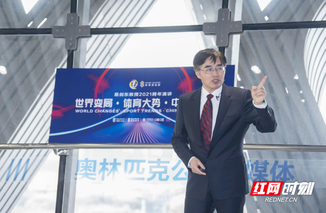 红网时刻新闻1月2日讯(记者 朱曙光)2020年12月31日下午,2020-2021易剑东教授跨年演讲在北京奥林匹克塔传播空间(4号塔)盛大开讲。作为第三次专注于体育发展的跨年演讲,易剑东继续以其对行业的专注研究和深度思考,聚焦“世界变局·体育大势·中国选择”三大命题,让我们在疫情的不确定中,保持淡定,笃定体育发展的未来。