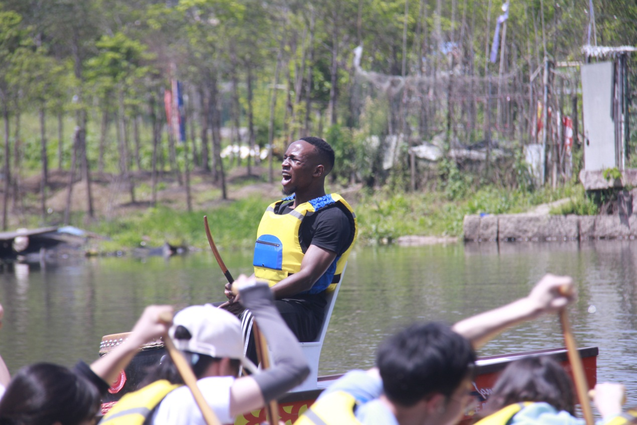 “从一开始的摇摇晃晃,甚至是翻船,到现在我们能顺利地划起来,感觉特别有成就感。”来自肯尼亚的留学生KANDIE告诉记者,他和他的队员们都是第一次划龙舟。