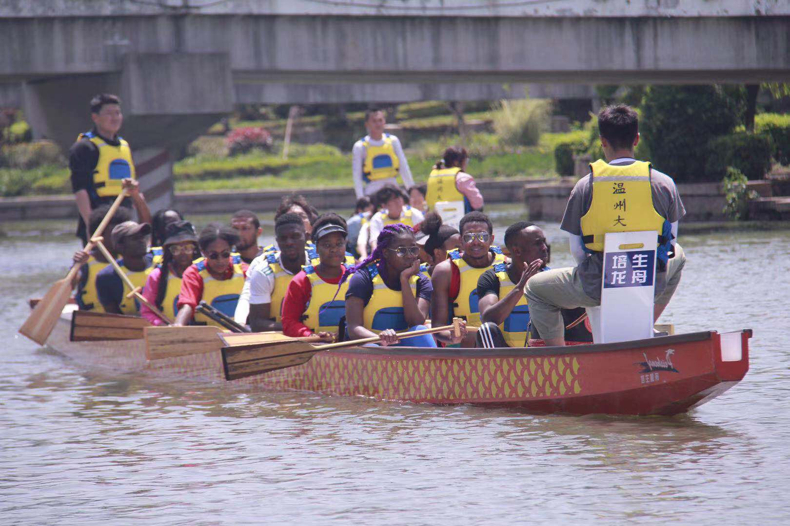 温大留学生龙舟队由13名队员分别来自来自津巴布韦、肯尼亚、赞比亚、尼日利亚等11个国家的留学生组成。他们都是第一次划龙舟。 “从一开始的摇摇晃晃,甚至是翻船,到现在我们能顺利的划起来,感觉特别有成就感。”来自肯尼亚的KANDIE说。