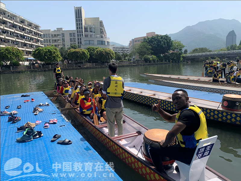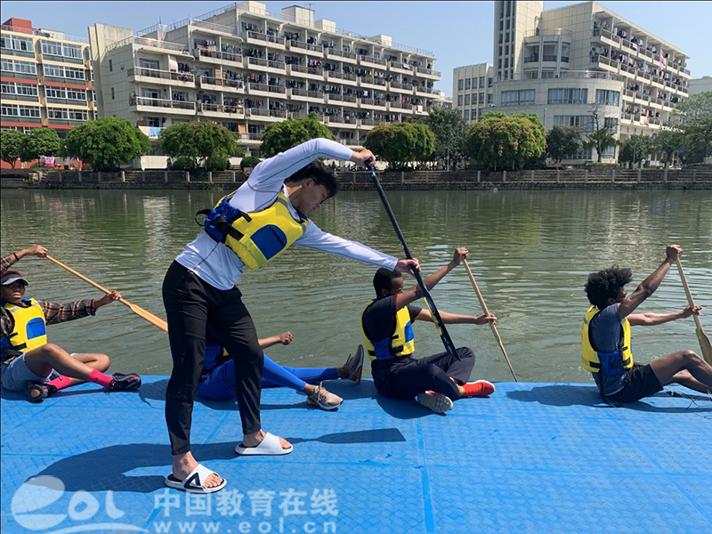 “从一开始的摇摇晃晃,甚至是翻船,到现在我们能顺利的划起来,感觉特别有成就感。”来自肯尼亚的KANDIE同学说。