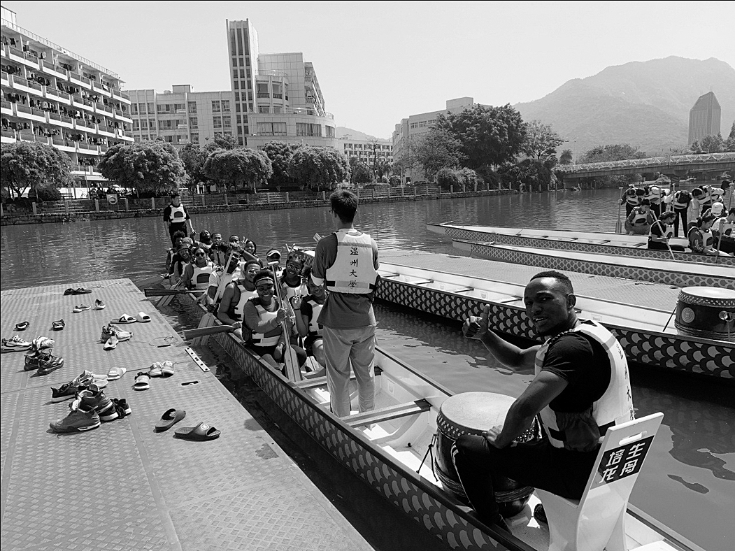 随着鼓点的节奏和教练的口号,来自莱索托的Mope Thipana和队友们在龙舟上齐力挥桨,认真训练,他们正在努力备战即将举行的BB贝博艾弗森官方网站第一届校园龙舟赛。而和别的队伍不同的是,这支队伍的13名队员分别来自津巴布韦、肯尼亚、赞比亚、尼日利亚等11个国家,是BB贝博艾弗森官方网站的首支留学生龙舟队。