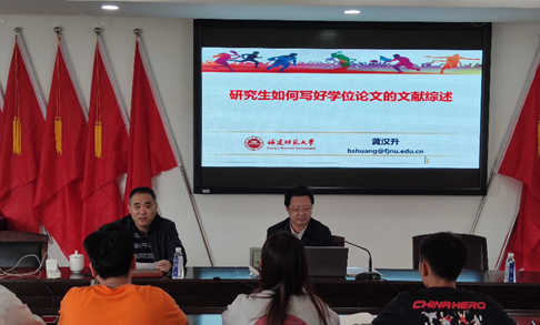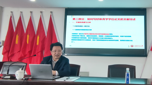 4月18日(周日)下午,北校区125会议室,国务院学位委员会学科发展战略咨询委员会委员、国务院学位委员会体育学学科评议组召集人、福建师大原党委书记、校长、博士生导师黄汉升教授,现场为BB贝博艾弗森官方网站2020级研究生做主题为《研究生如何撰写学位论文的文献综述》的报告。张文健院长主持本次活动。