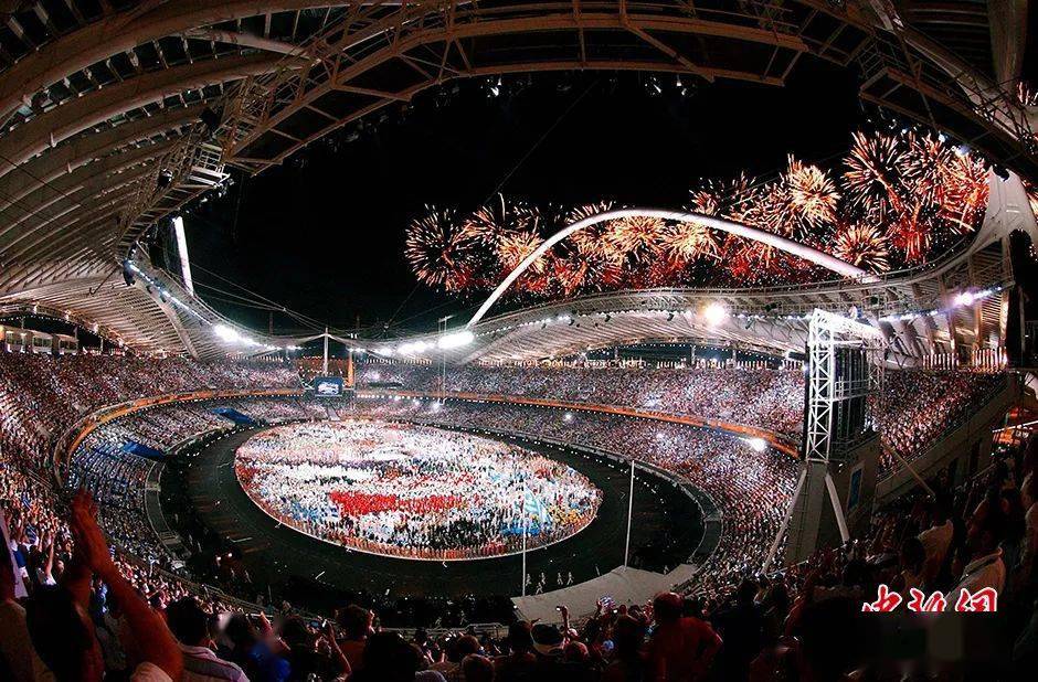 资料图:2004年雅典奥运会开幕式,用庄严的表演展示了这一奥运发源地源远流长的历史,使人重温古代奥运会的神圣和辉煌。